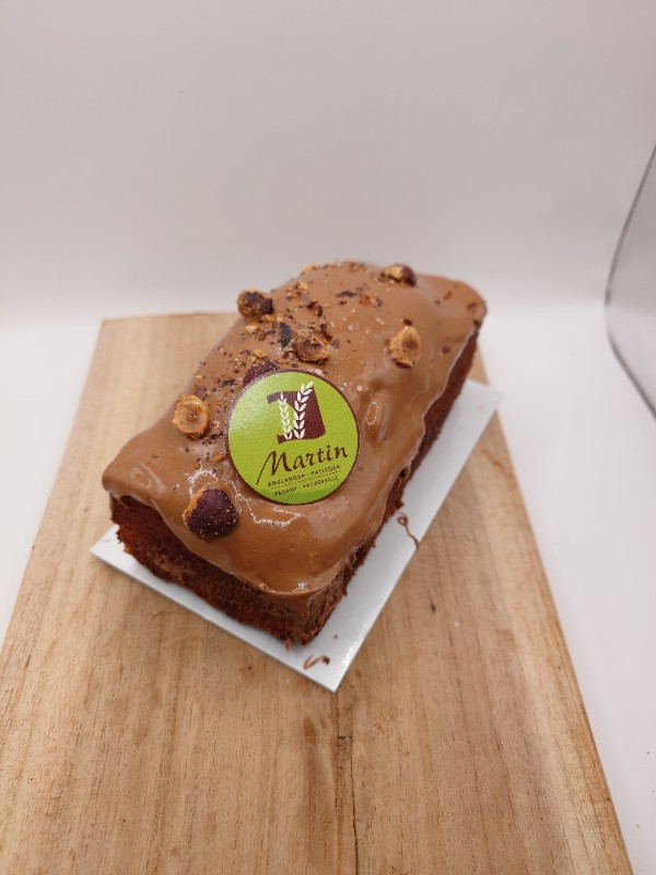 un cake pain d'épices plus moelleux que le véritable pain d'épices, moins fort en épices également et un glaçage au praliné noisettes pour la gourmandise! un accord peu commun mais délicieux!